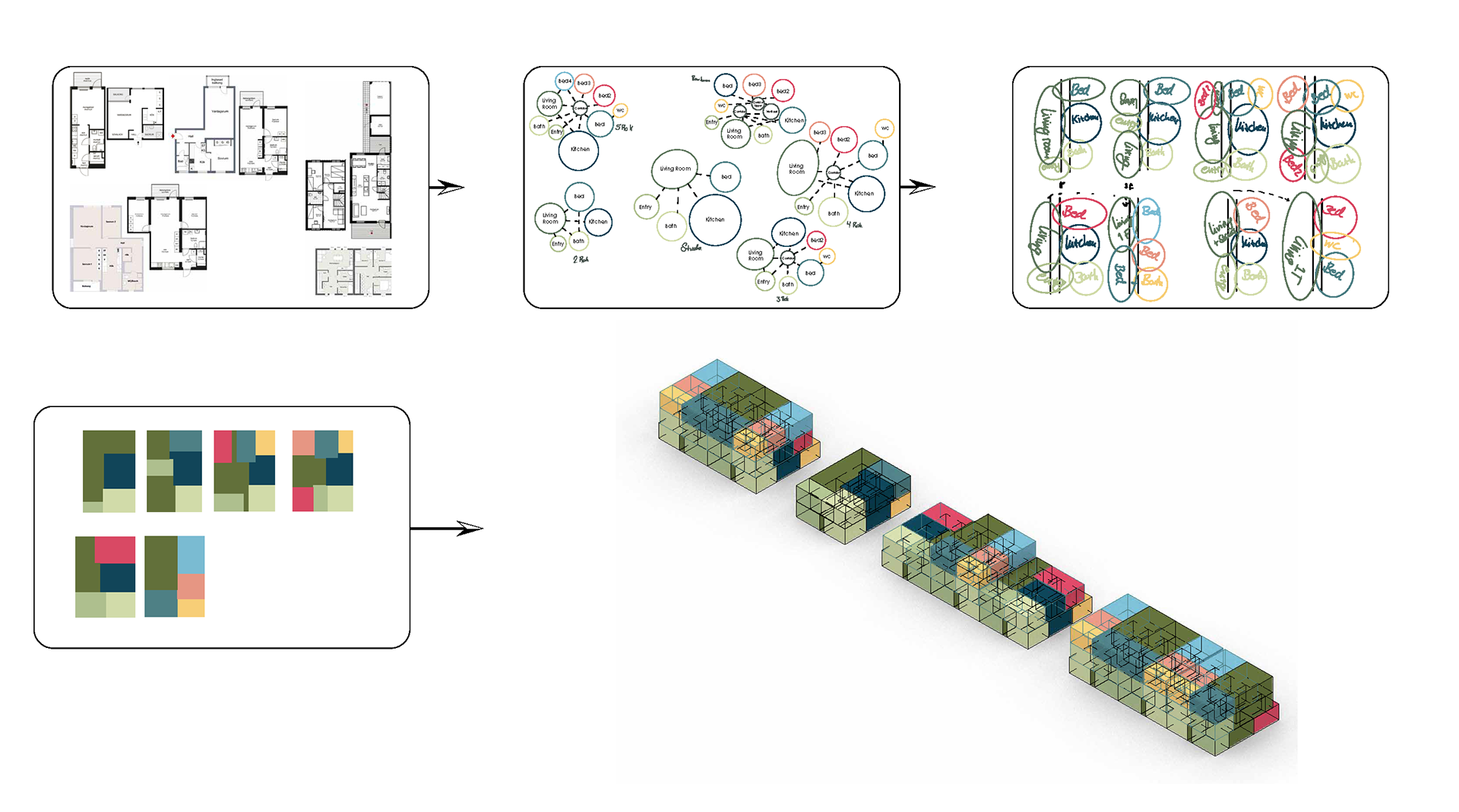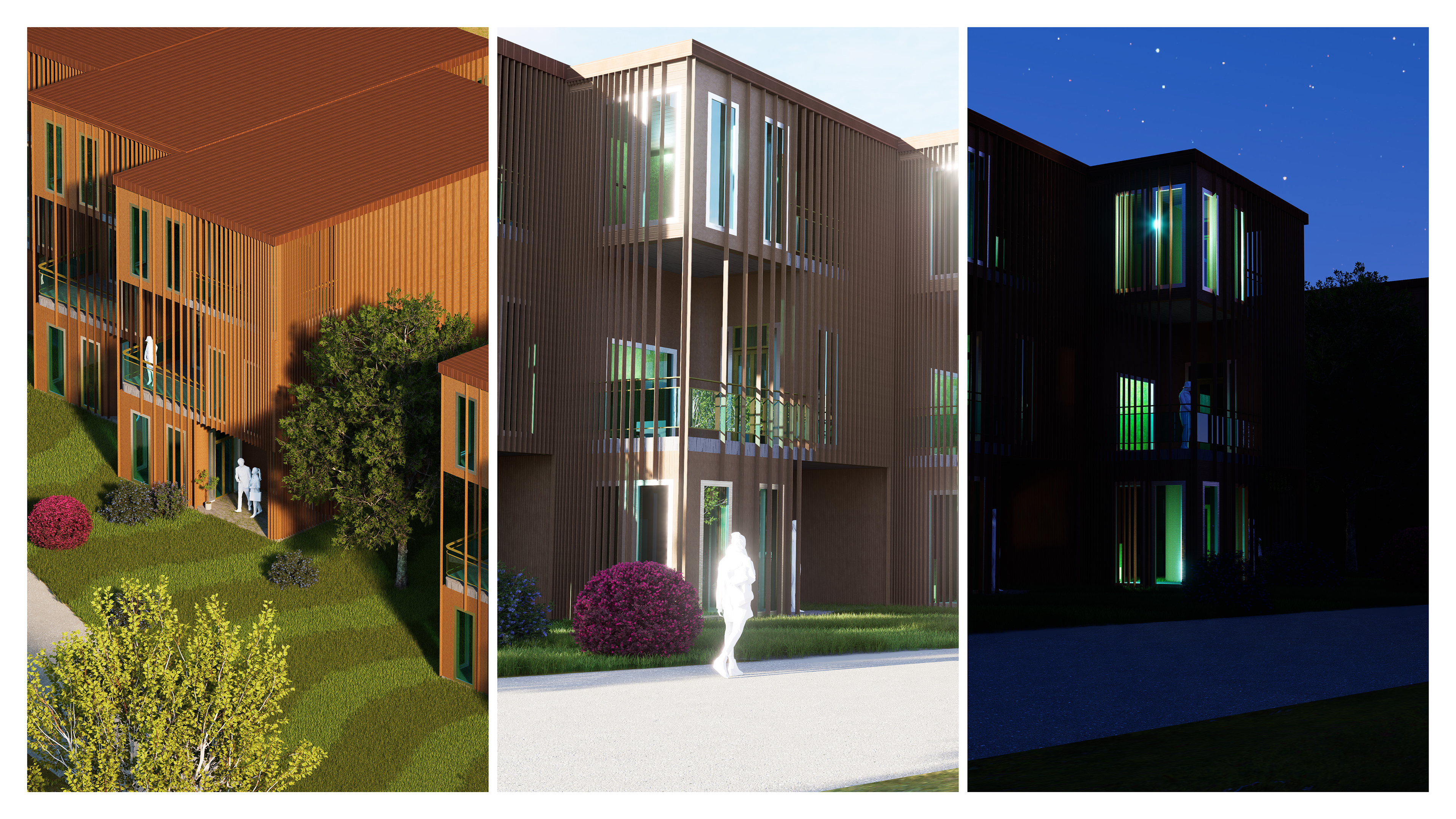 This project explores housing design as a dynamic, adaptable framework rather than a fixed spatial structure. Conventional homes are typically built with predetermined layouts—walls, doors, and circulation routes—which rarely reflect the evolving needs of contemporary life. This rigidity becomes especially problematic during life transitions such as the birth of a child, multigenerational living, or financial constraints that prevent relocation. In response, this proposal investigates a system of adaptable row houses, designed as structural shells, on an unused urban plot in Umeå initially allocated for a kindergarten. These modular shells support flexible interior configurations, allowing residents to define their own room layouts and circulation paths over time. The design approach minimises the need for costly renovations by enabling lightweight, movable partitions—such as fabric or demountable walls—within a fixed load-bearing envelope. This flexibility supports diverse user groups, including growing families, renters, and co-living arrangements. Through site analysis, scenario planning, and spatial programming, the project offers a low-waste, user-driven housing alternative that has the potential to address Sweden's ongoing housing crisis. Rather than forcing people to adapt to architecture, this proposal suggests that architecture should adapt to the people who use it. By doing so, it promotes long-term sustainability, personalisation, and accessibility in housing design, thereby encouraging a more responsive built environment.